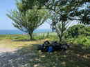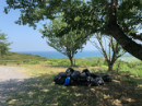 双眼鏡横の桜の木の下に昨日までなかったゴミ袋の山を発見しました。